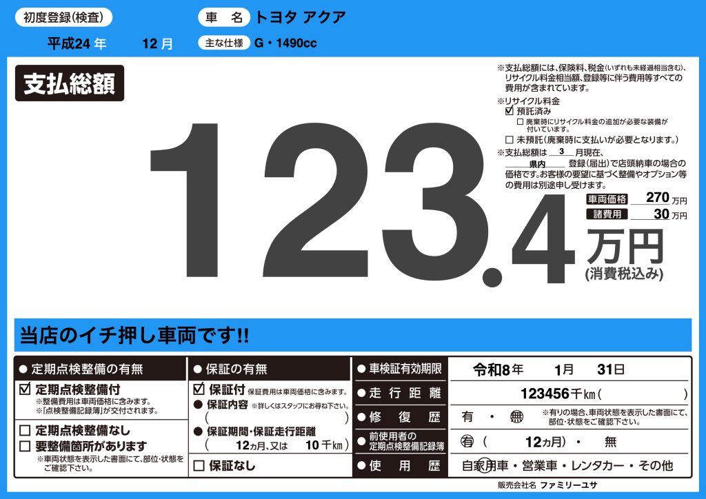 ③中古車プライスボードをプライスボード印刷サービスで作成する【推奨】