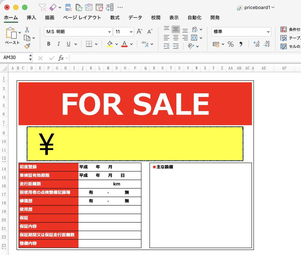 ①中古車プライスボードをExcelやPowerPointで自作する